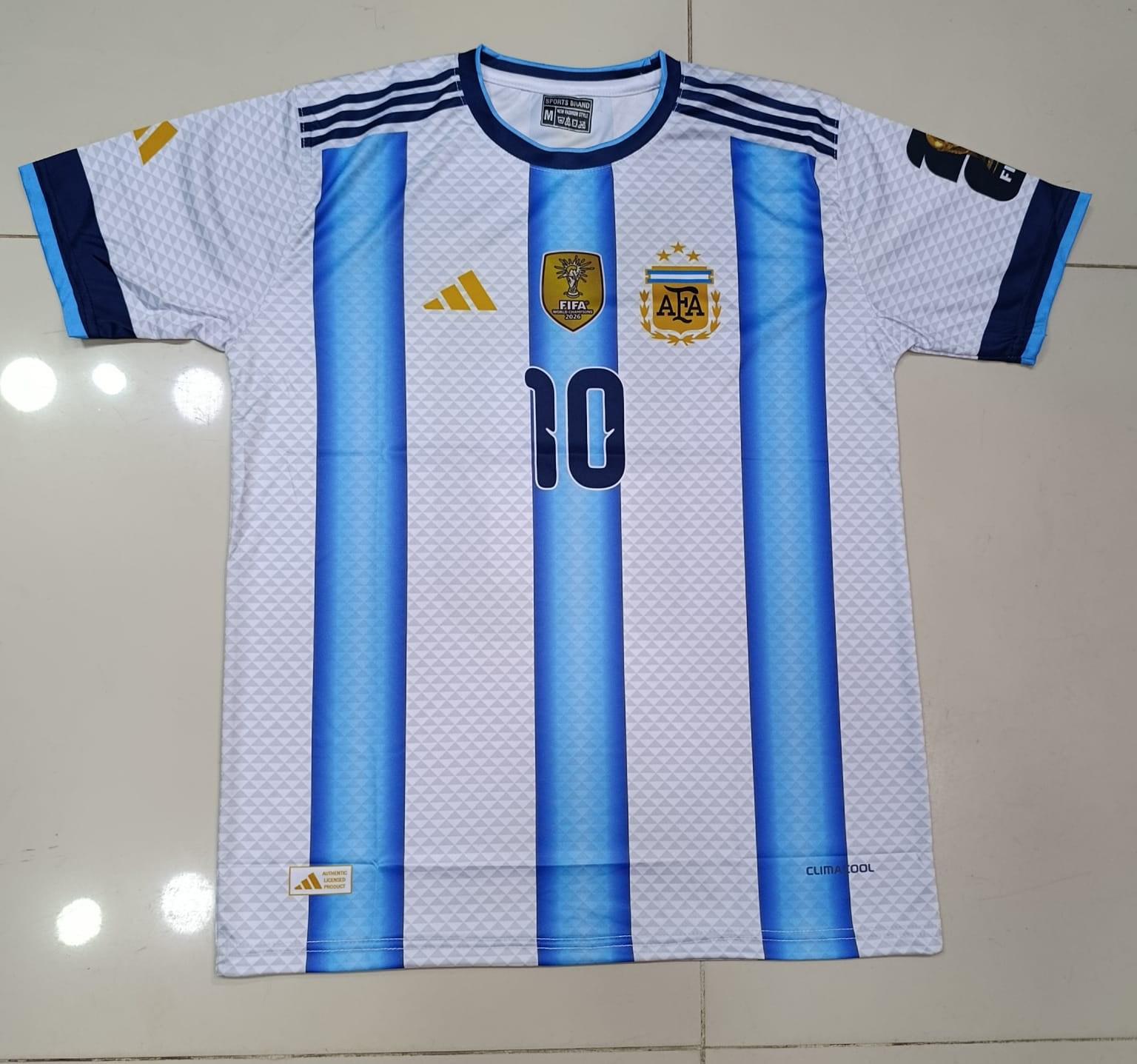 Messi argentina wc Jersey - A one-of-a-kind masterpiece blending Messi's iconic Barcelon! Crafted from 100% polyester digital sublimation fabric for vibrant colors that never fade. Breathable, moisture-wicking material keeps you cool during games or streetwear styling [conversation_history].